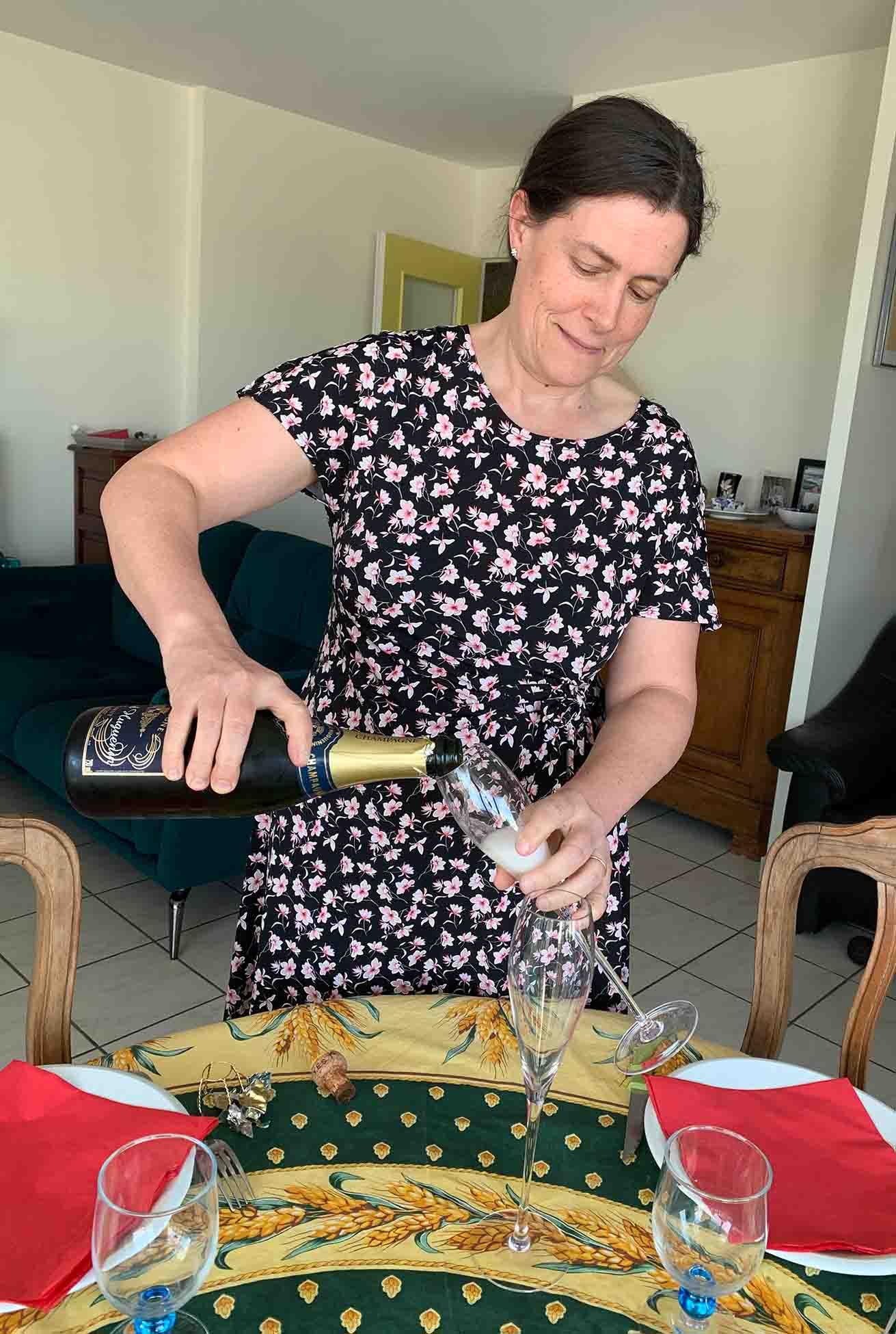 Here I am pouring champagne on my birthday in June, and on vacation in the Vosges in August. I’m also wearing a dress in our anniversary photo above.